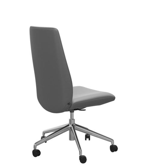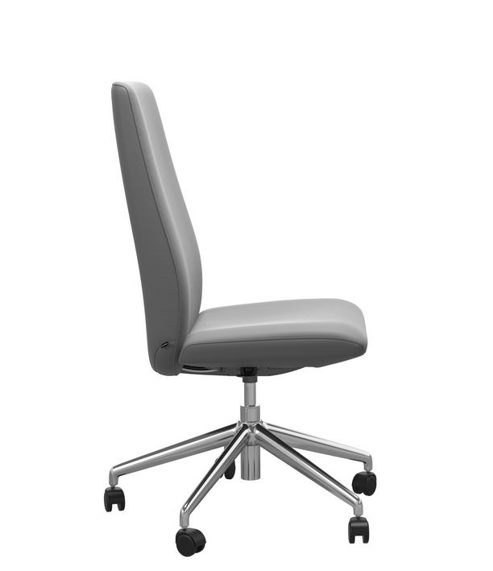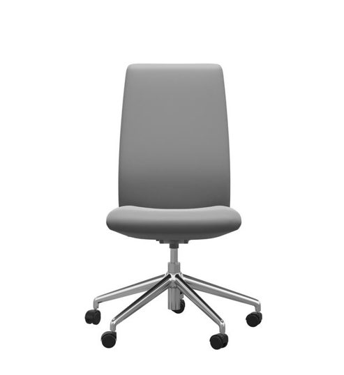Die Abbildung zeigt den Home Office Sessel Laurel mit hohen Rücken in Leder Batick Wild Dove mit dem gestell in Chrom.