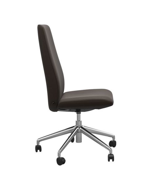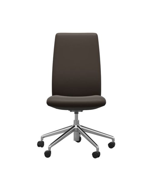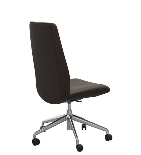 Die Abbildung zeigt den Home Office Sessel Laurel mit hohen Rücken in Leder Batick Brown mit dem gestell in Chrom.
