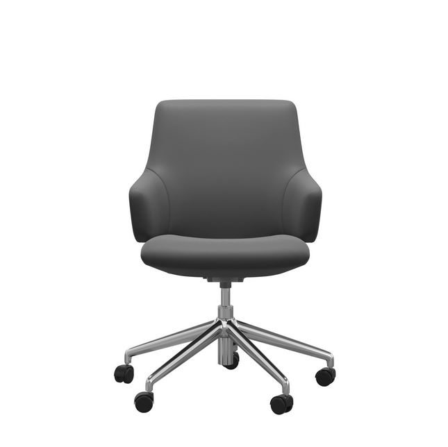 Die Abbildung zeigt den Home Office Sessel Laurel mit niedrigen Rücken in Leder Batick Grey mit dem gestell in Chrom.