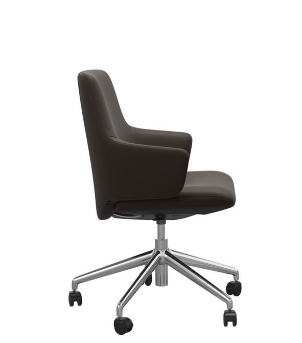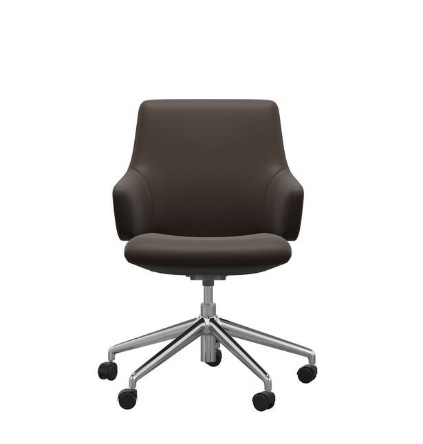 Die Abbildung zeigt den Home Office Sessel Laurel mit niedrigen Rücken in Leder Batick Brown mit dem gestell in Chrom.