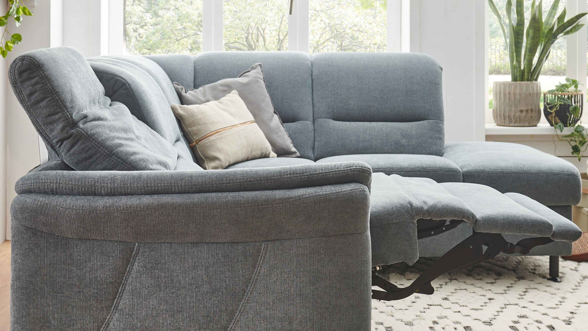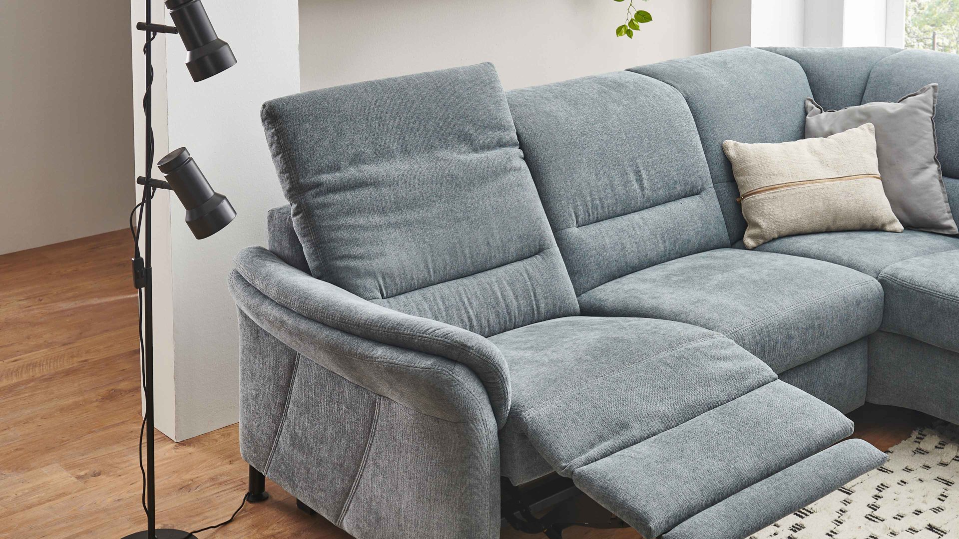 Während die Beinauflage auf Sitzhöhe fährt, bewegt sich der Sitz einige Zentimeter nach oben und vorne, was zu einer Relaxposition führt. Daraufhin fährt der Rücken weiter bis zur Liegeposition und nimmt den Sitz mit - Letzterer begibt sich noch ein Stück nach oben und vorne. Der Rücken bleibt dabei stets wandfrei - daher rührt der Name dieser Funktion. Zusätzlich können Sie das Kopfpolster motorisch stufenlos verstellen.