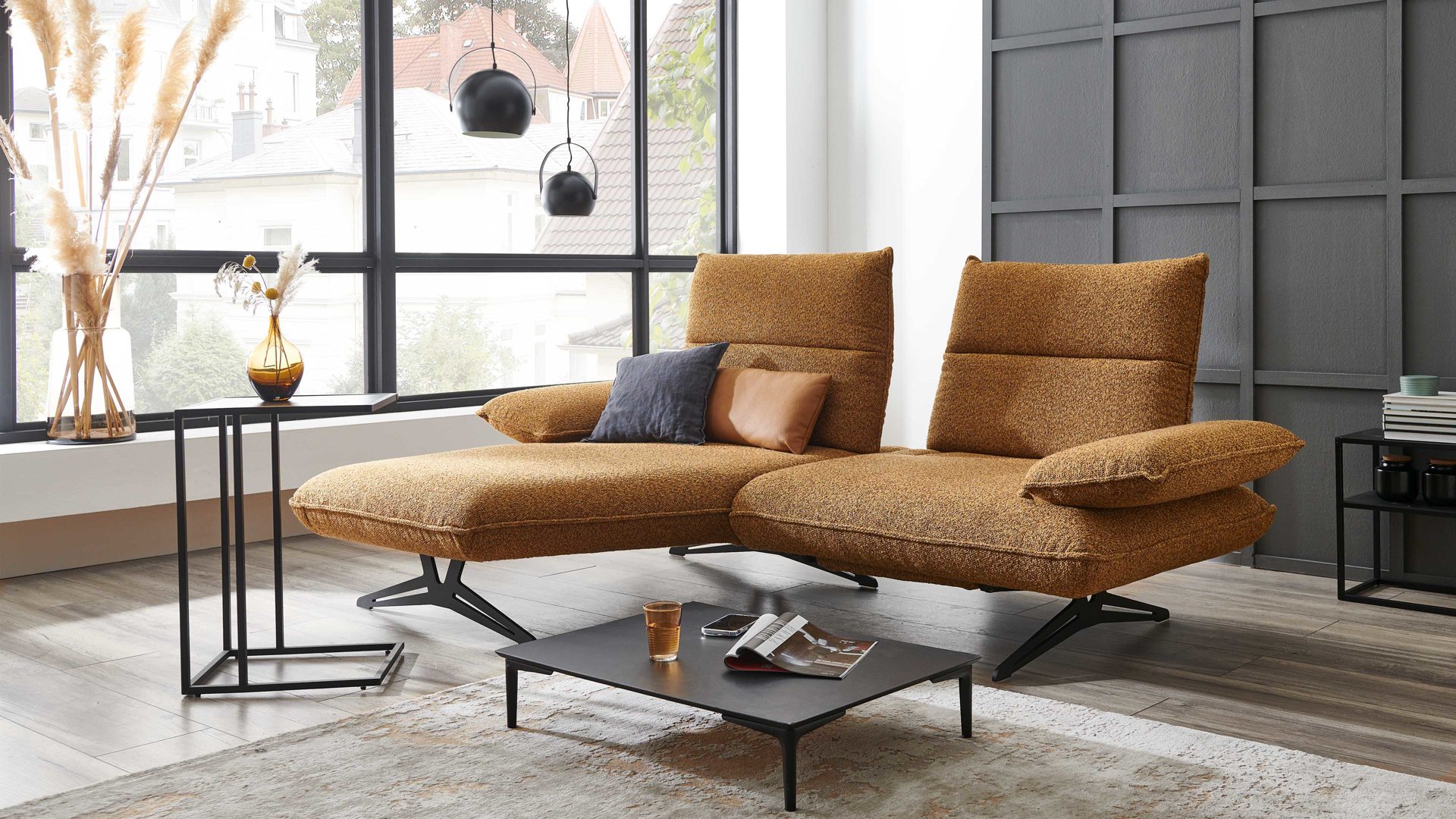 Das KOINOR Ecksofa Caio ist in verschiedenen Stoff- und Ledervarianten erhältlich und wird in Deutschland hergestellt und ist mit dem Golden M ausgezeichnet. Gönnen Sie sich diesen luxuriösen Begleiter für Ihr Zuhause und erleben Sie pure Gemütlichkeit auf höchstem Niveau.