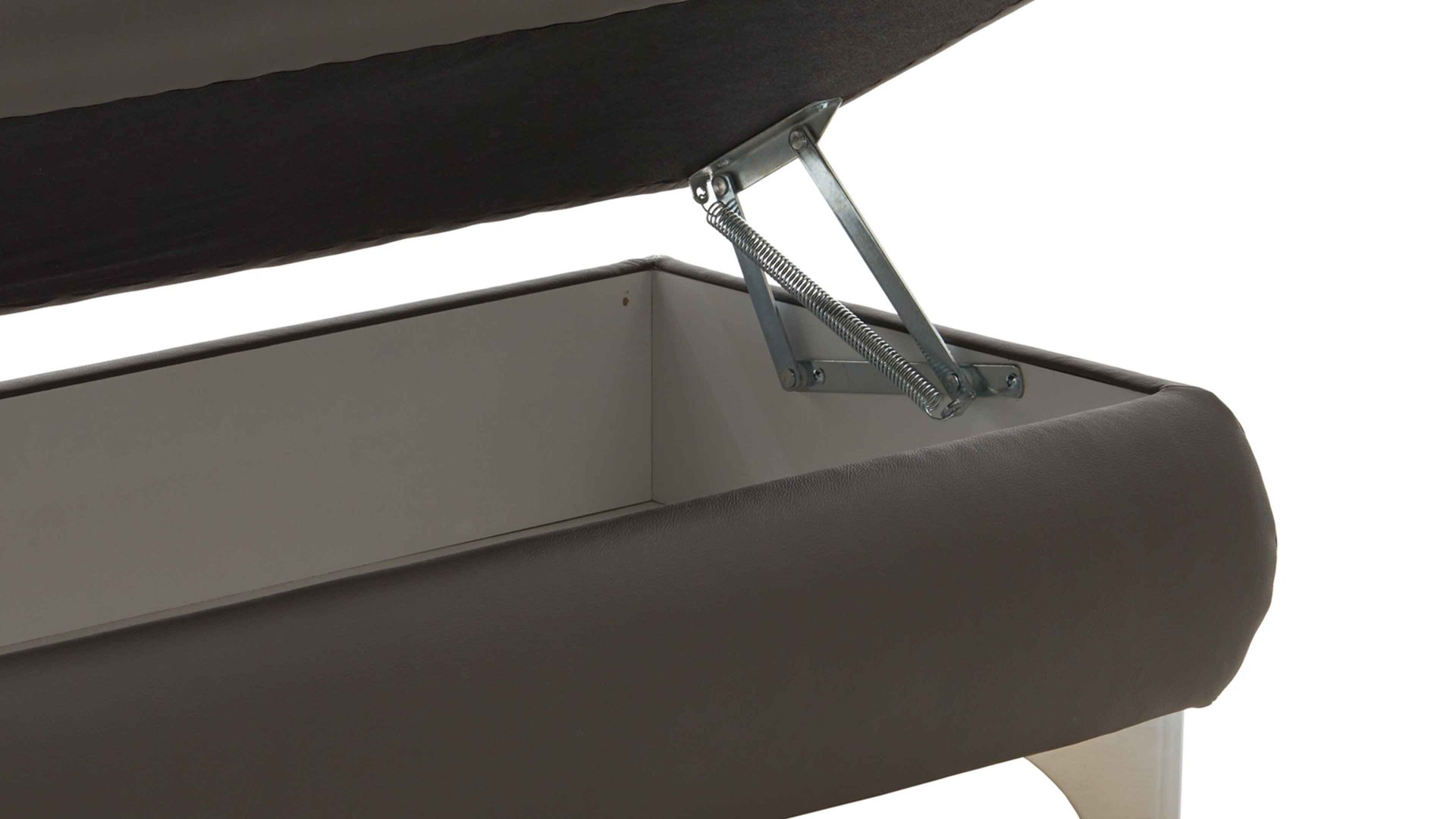 Die manuelle Aufklappfunktion geht mit praktischem Stauraum für Wohntextilien, Spielzeug und andere Gegenstände einher. Mittels Springaufbeschlag können Sie den Lederhocker einfach öffnen. Der Stauraum ist innen weiß beschichtet.