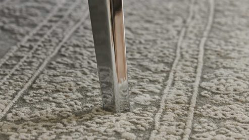 steingrauer Semi-Anilin-Lederbezug mit softem Griff und feiner Lederstruktur, kombiniert mit glänzenden Metallfüßen