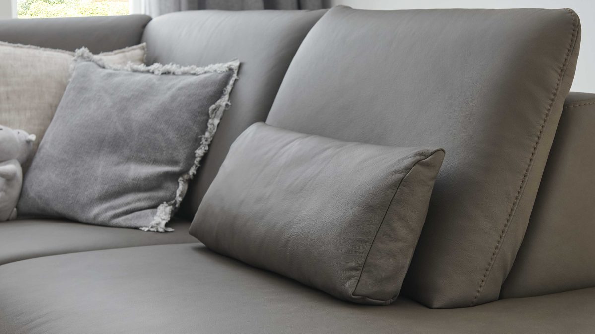 steingrauer Semi-Anilin-Lederbezug mit softem Griff und feiner Lederstruktur