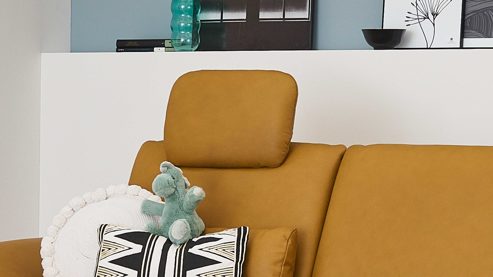 das Kissen verwandelt hochgeklappte Armlehnen in eine vollwertige Rückenlehne - dazu wird die Rolle auf die Armlehne gelegt