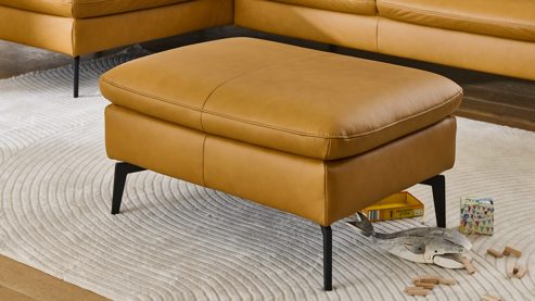 kurkumafarbener Semi-Anilin-Lederbezug mit softem Griff und feiner Lederstruktur