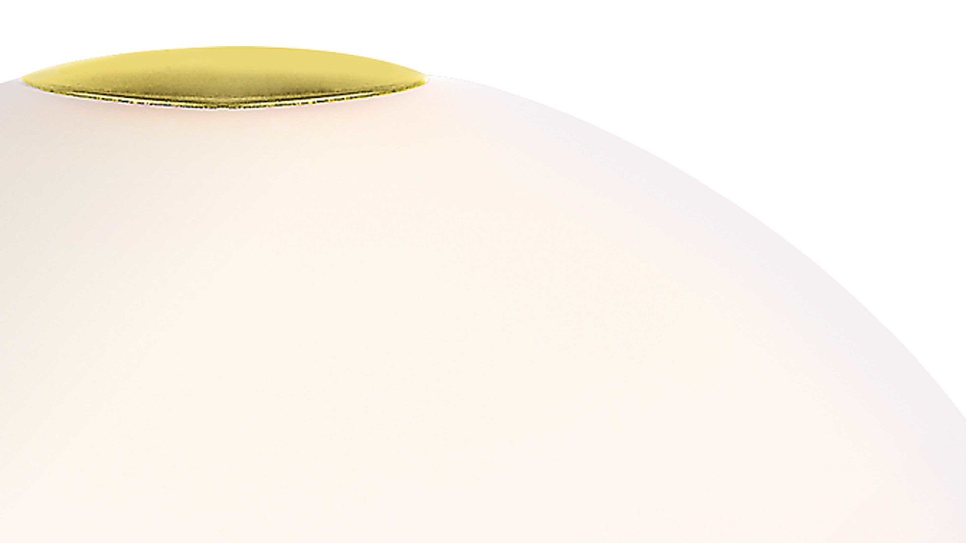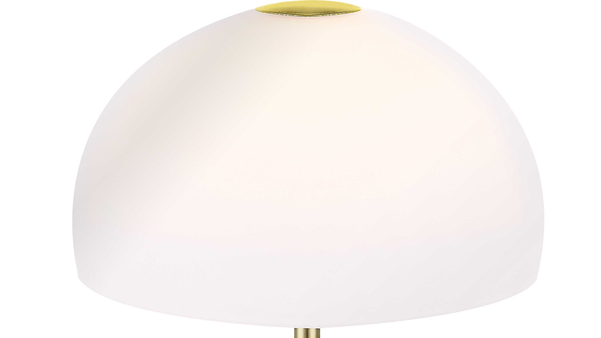 Und auch die Verarbeitung des Wohnaccessoires ist besonders hochwertig. So ist das Gestell matt messingfarben, während der charakteristische Schirm aus edlem Opalglas besteht. Diese stilvolle LED-Tischlampe ist ca. 27 cm hoch und hat einen Durchmesser von ca. 15 cm. Das integrierte 5 Watt LED-Leuchtmittel gehört der Energieeffizienzklasse F (Spektrum A bis G) an.