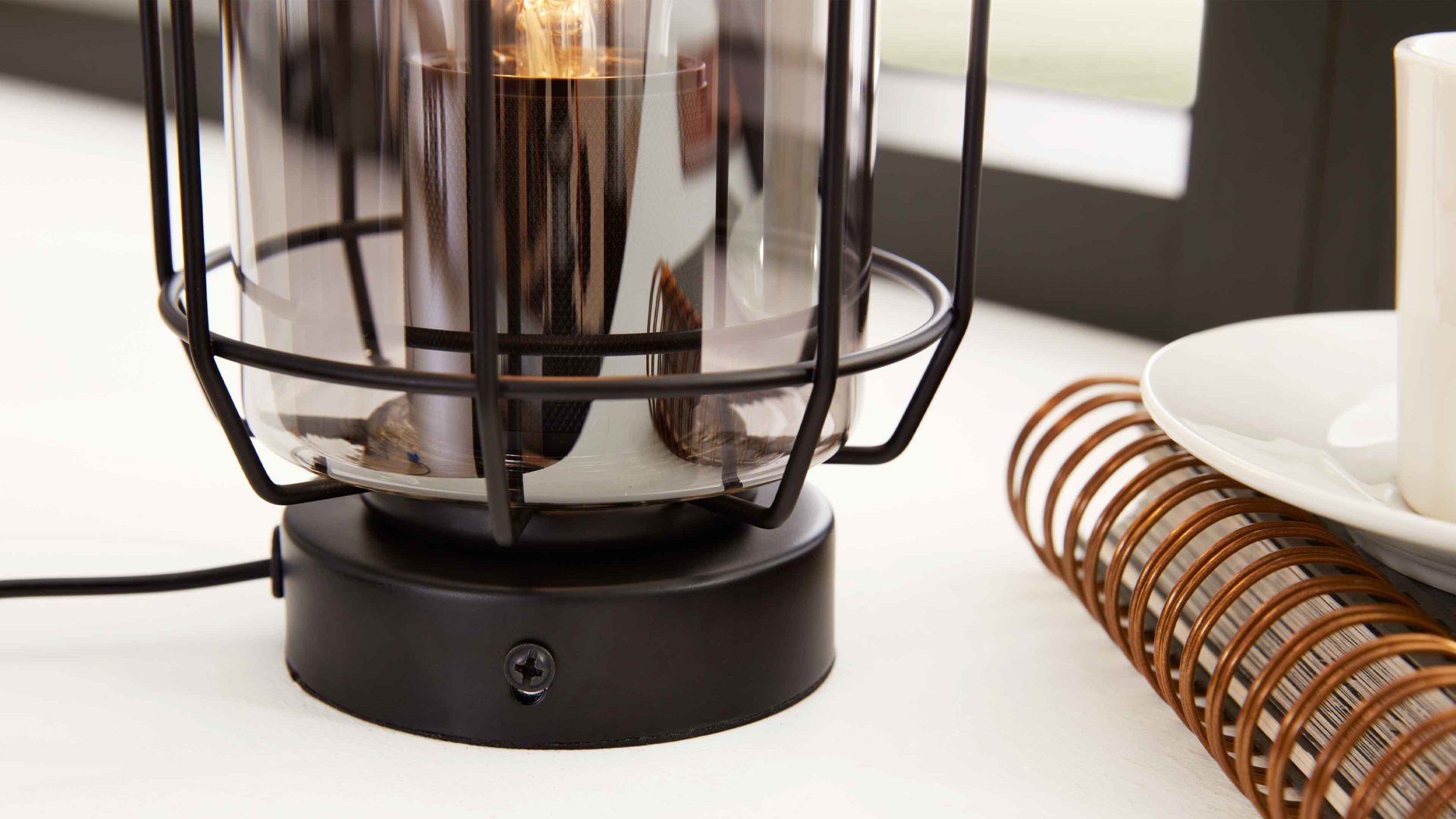 Die Lampe misst ca. 13 x 20 cm (DxH) und ist mit einem praktischen Wippschalter am textilummantelten Kabel ausgestattet, das ca. 150 cm lang ist. So kannst du sie bequem platzieren und komfortabel bedienen.