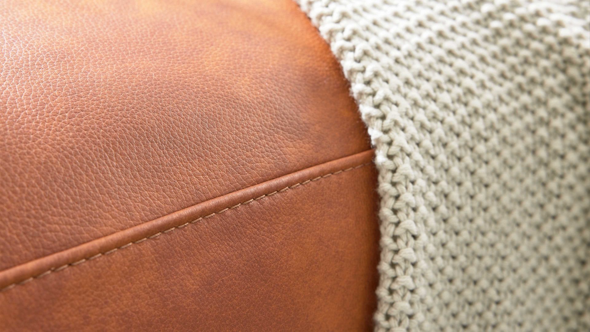 Der Polstersessel aus der Interliving Sofa Serie 4004 verbindet moderne Formensprache mit bestem Sitzkomfort. Der cognacfarbene LongLife-Lederbezug verleiht ihm eine warme, edle Ausstrahlung, während die kubischen, schmalen Armlehnen und die schwarzen Kunststoffgleiter das klare Design perfekt abrunden. Mit kompakten Maßen von ca. 80 x 80 x 92 cm (B/LxHxT) fügt sich der Ledersessel harmonisch in jedes Wohnambiente ein – als stilvolles Einzelstück oder als passende Ergänzung zur Garnitur.