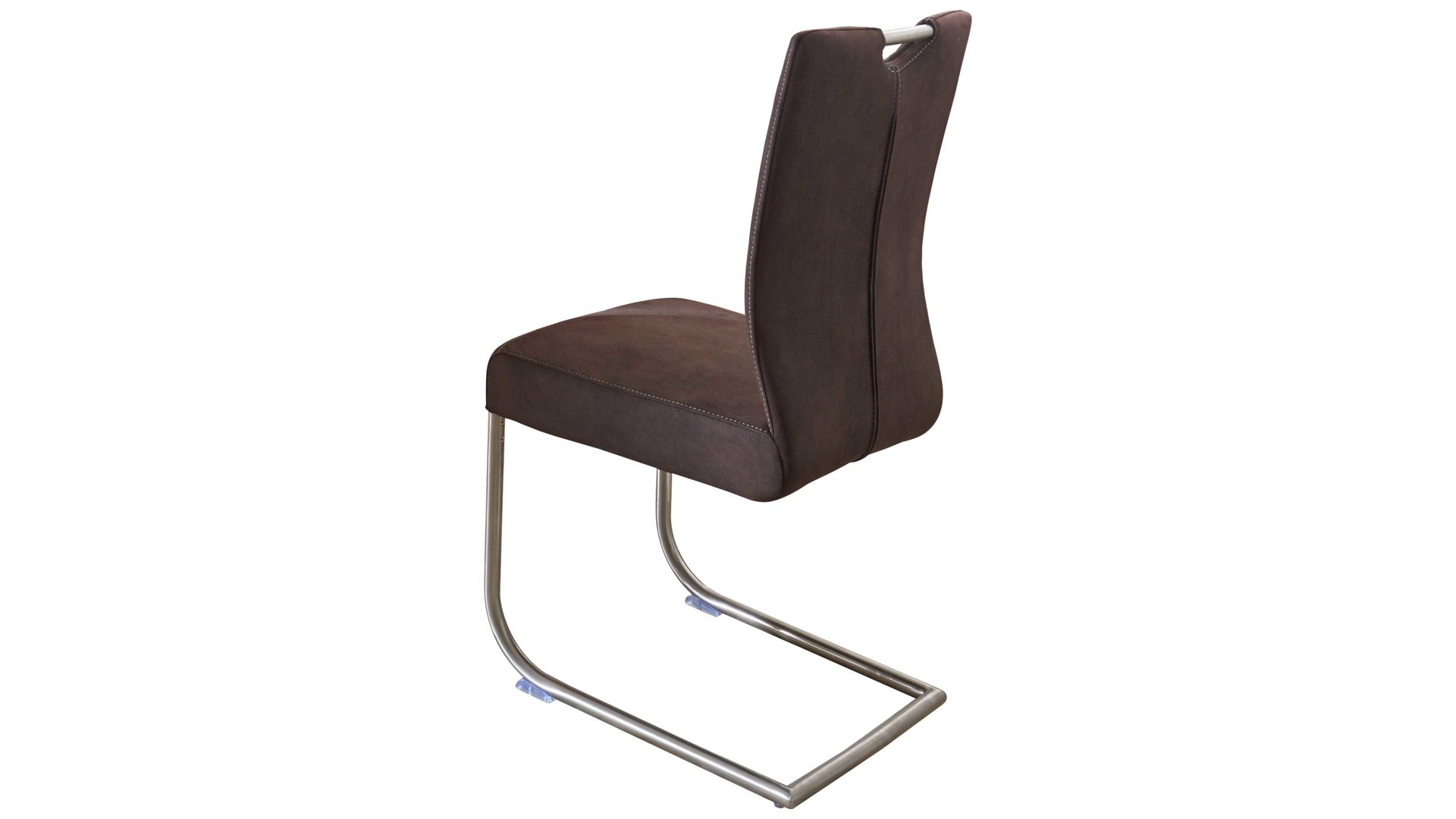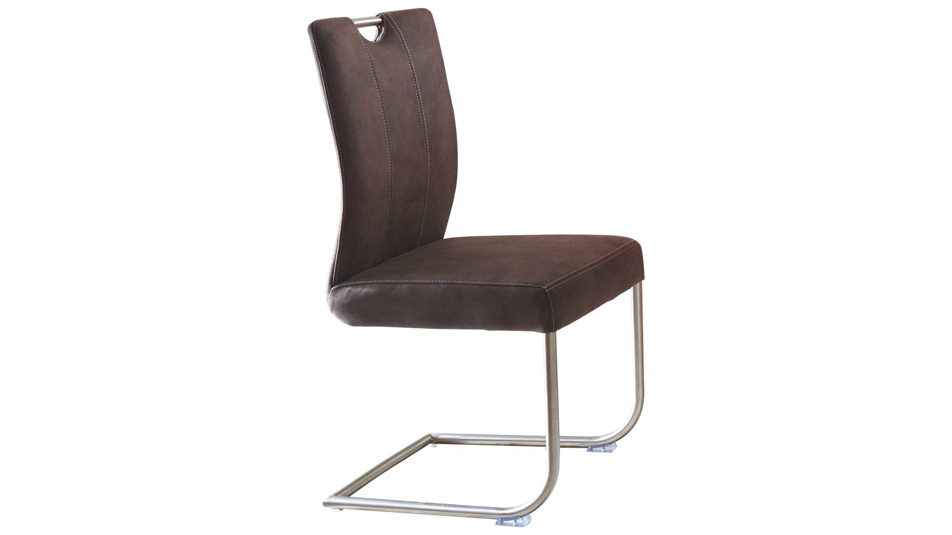 Sowohl das angenehme Sitzgefühl als auch die erstklassige Optik des gepolsterten Freischwingers begeistern dabei im alltäglichen Gebrauch. Das Sitzmöbel hat einen braunen Mikrofaserbezug, der zum einen wunderbar weich und zum anderen pflegeleicht ist. Außerdem steht der Polsterstuhl auf einem gebürsteten Edelstahlgestell, wodurch das Sitzmöbel sehr modern wirkt. So kombinieren Sie es besonders gut zu Ihrem Holztisch im Wohnzimmer oder zu Ihrem stilvollen Esstisch in Ihrer Wohnküche.