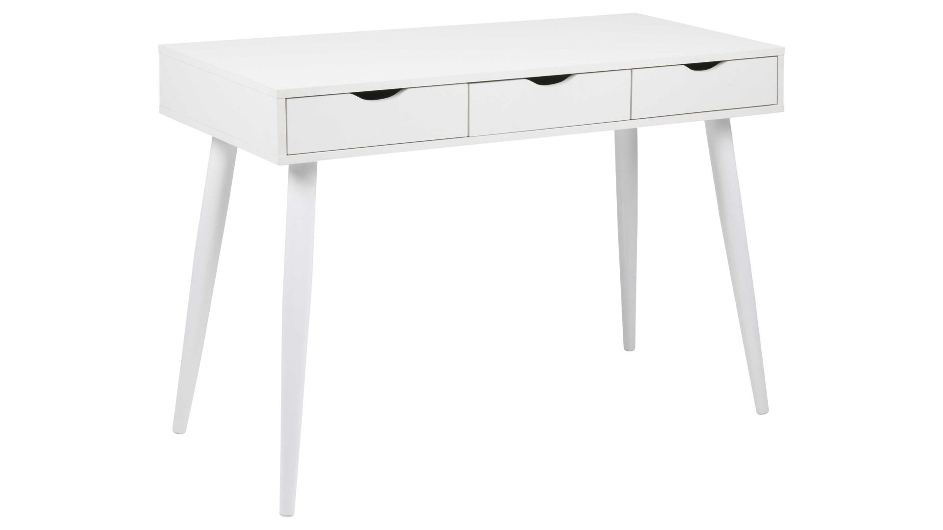 Der schicke Arbeitstisch wertet Ihr Home Office optisch enorm auf und bietet Ihnen dazu noch praktischen Stauraum: In den drei Schubladen mit grifflosen Fronten können Sie verschiedene Gegenstände aufbewahren, die Sie in Ihrem Arbeitsalltag griffbereit haben wollen. Auf der Tischplatte lässt sich rund um einen Laptop auch noch diverses Zubehör platzieren, beispielsweise eine Tischlampe, Stifte oder auch ein inspirierendes Dekoelement, etwa ein Foto Ihrer Lieben.