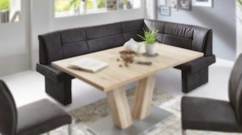 Mit ihren designspezifischen Eigenschaften bereichert die Küchenbank Ihren Speisebereich in jeder Hinsicht. Die Stellfläche beziehungsweise das Schenkelmaß beläuft sich auf ca. 202 x 152 cm (LxB). Im Shop sind ergänzend ein Schwingstuhl sowie ein Esstisch des Programms erhältlich, sodass Sie Ihre Essecke harmonisch gestalten können.