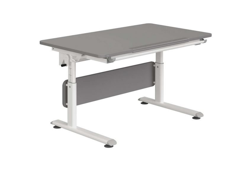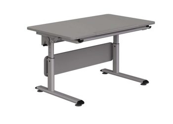 Der PAIDI Schreibtisch Diego, aus einer Platte in Schiefergrau und einem dazu passenden Metallgestell in silber, passt besonders gut ins Kinderzimmer. Er lässt sich auch mit einem Rollcontainer oder einem Schreibtischstuhl kombinieren.