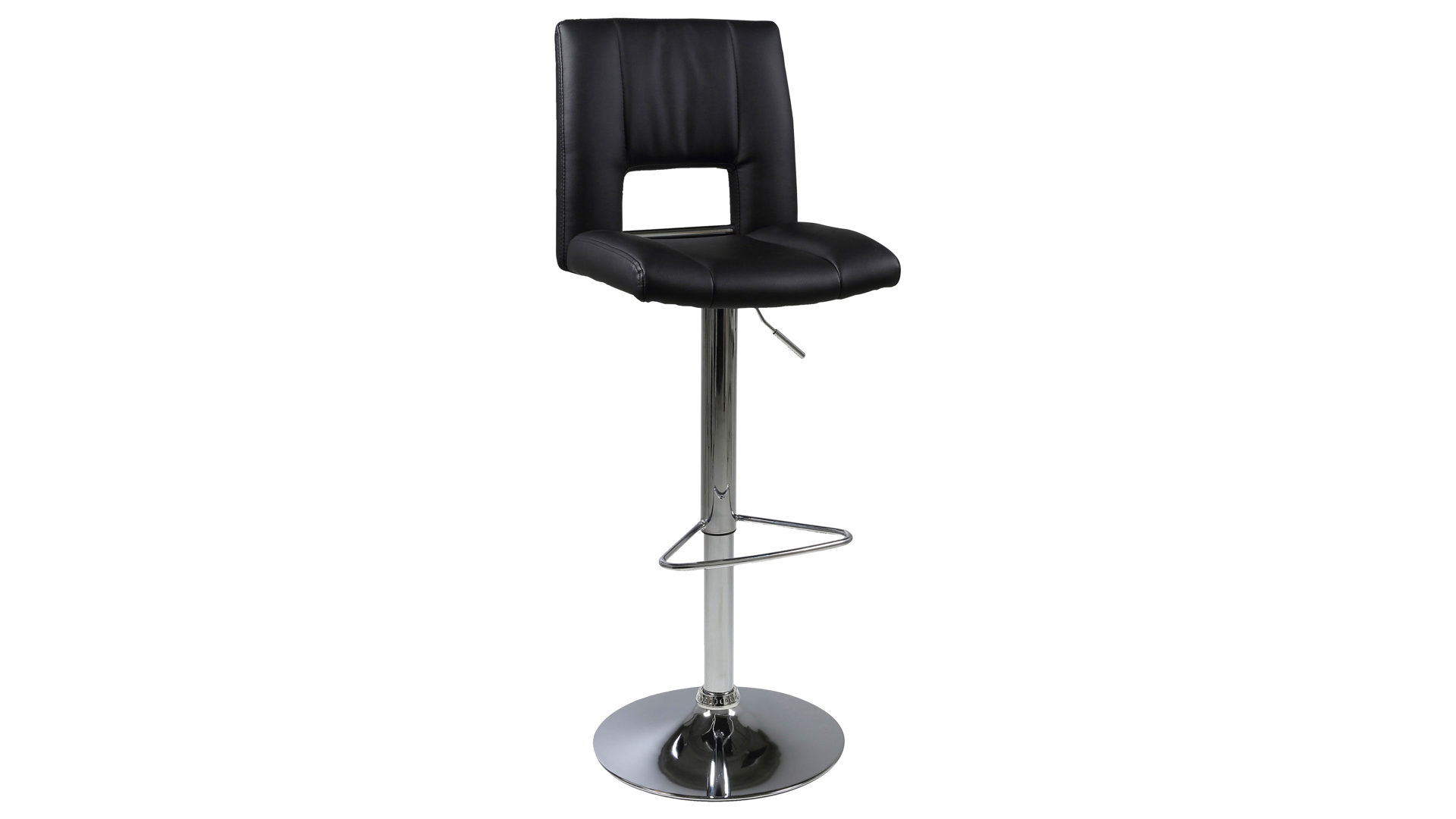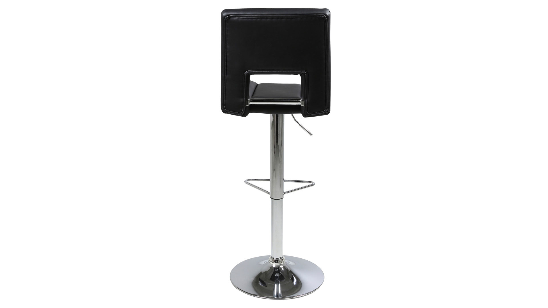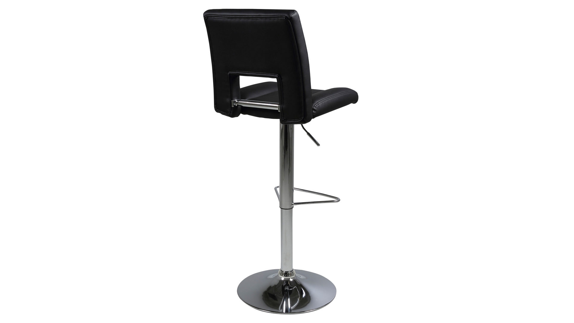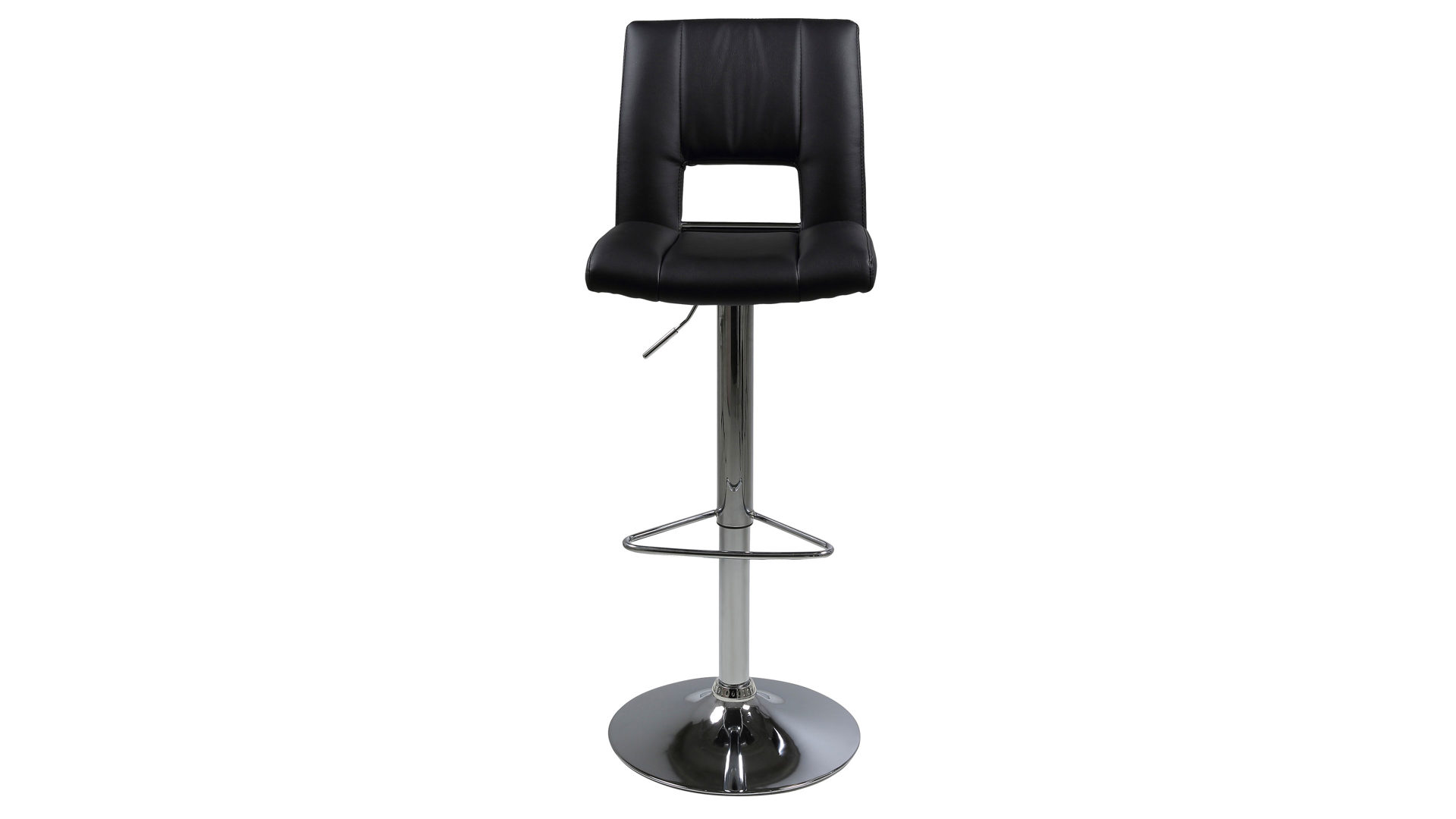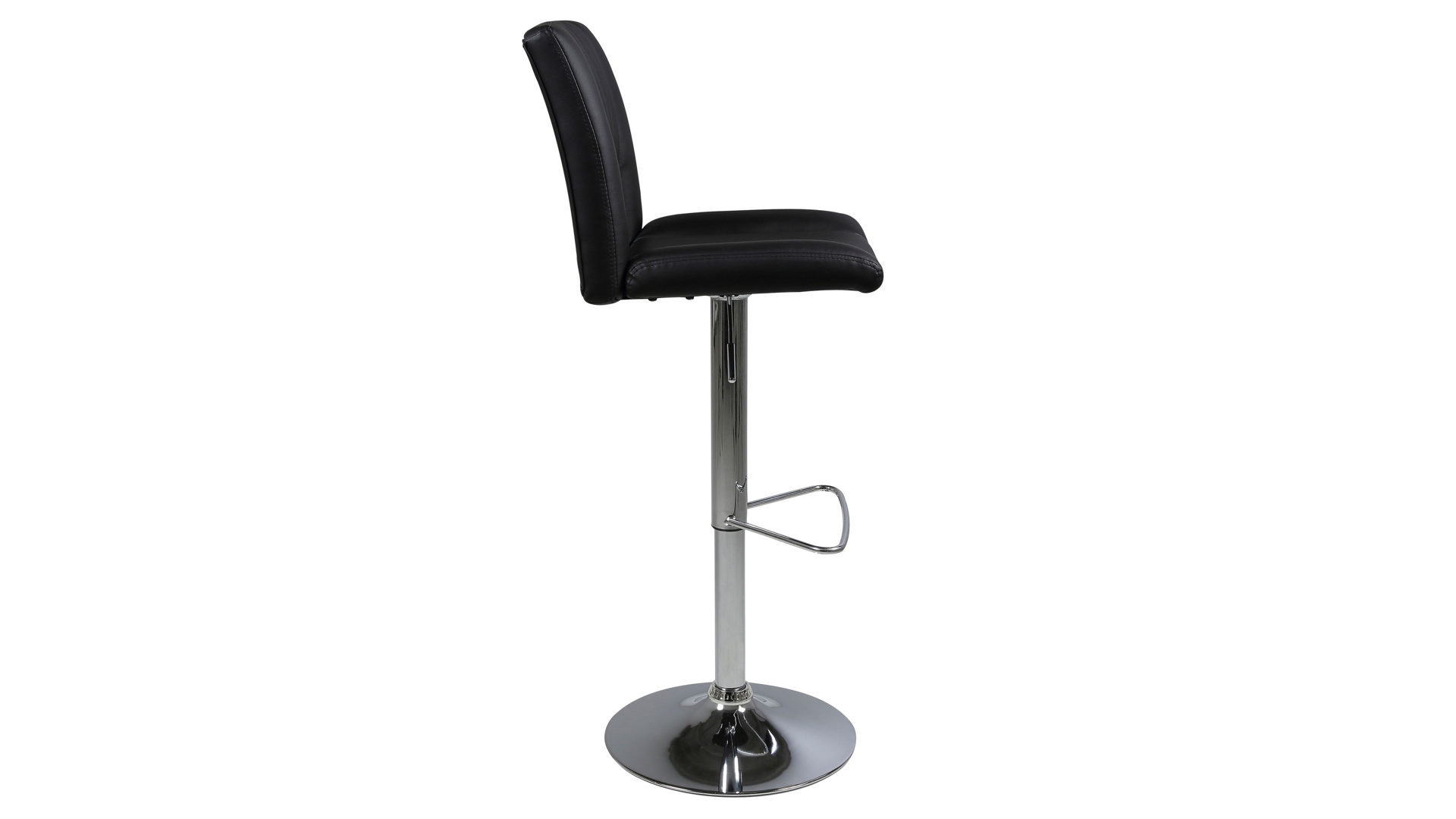 Dann ist dieser modische Barhocker Ihre erste Wahl. Der schlichte schwarze Kunstlederbezug gibt Ihnen die Freiheit, den Drehhocker mit Ihrem Einrichtungsstil zu kombinieren. Die hochwertig verarbeitete verchromte Fußstütze sorgt beim Sitzen für zusätzlichen Halt. Durch den verchromten Trompetenfuß erhält der Dreh-Barhocker ein zeitgemäßes Design.