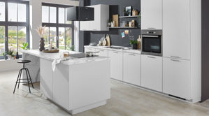 Die WERT KÜCHE® Carina lässt sich ganz nach Ihren Vorstellungen gestalten. Optional können Sie die Küche um weitere Elektrogeräte, eine passende Armatur, Innenausstattung oder Beleuchtung ergänzen. Dank der individuell plan- und ergänzbaren Küchenmöbel passt sich die Küche flexibel Ihren räumlichen Gegebenheiten an.