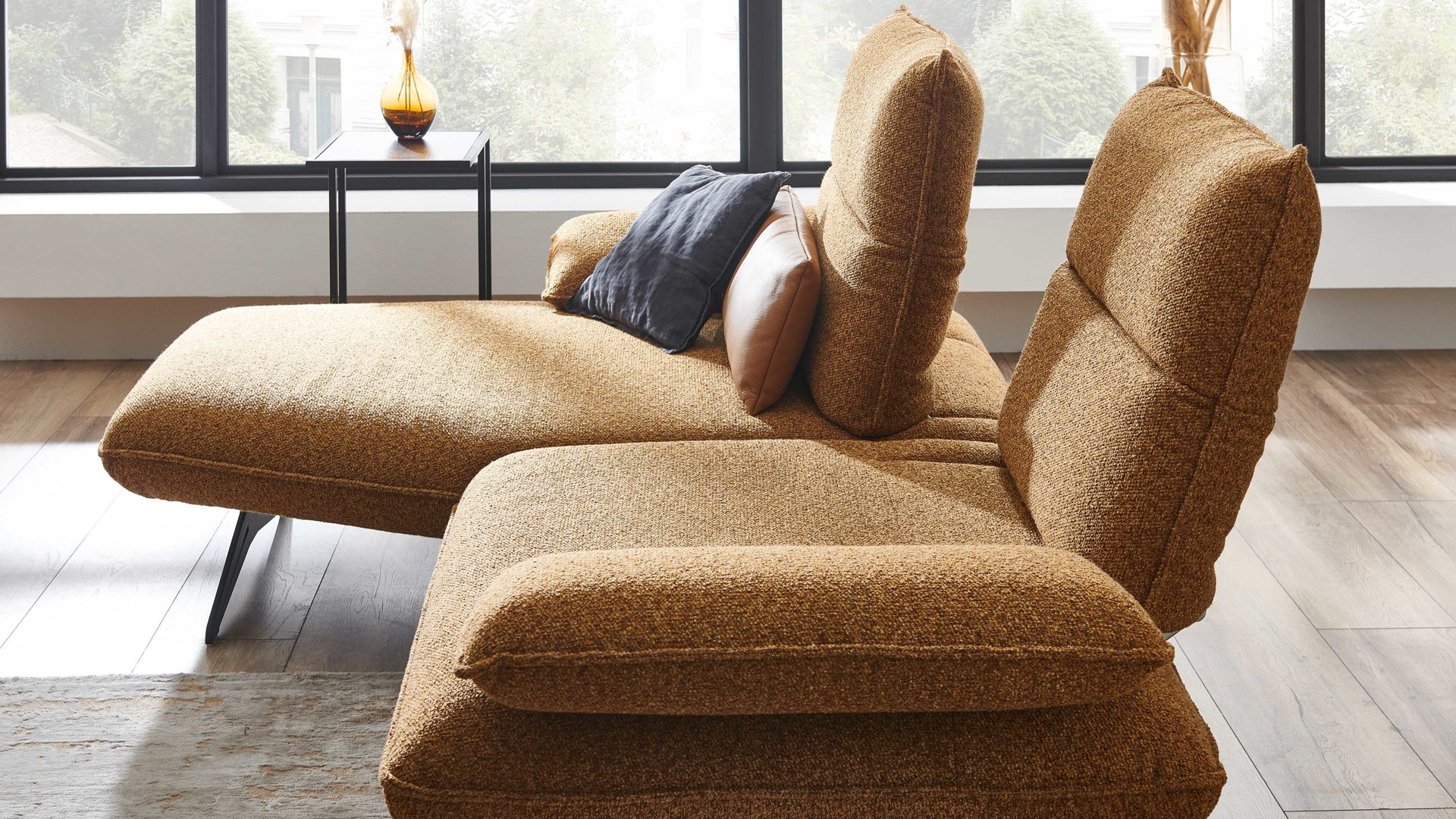 Das KOINOR Ecksofa Caio mit hellbraunem Stoffbezug Intense ist ein absolutes Must-have für jeden Einrichtungsliebhaber.
