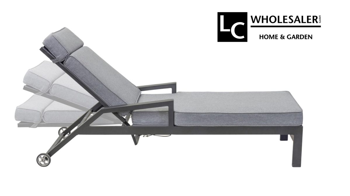 Die Liege Sondrion (259218) von L.C. Wholesaler steht für modernen Komfort und stilvolle Leichtigkeit. Sitz- und Rückenlehne aus hochwertigen Textilien passen sich angenehm an, während die verstellbare Rückenlehne pure Relaxmomente ermöglicht. In Silber-Hellgrau mit komfortablem Sitzkissen wirkt die Liege elegant und zeitlos. Das anthrazitfarbene Aluminiumgestell ist stabil, wetterbeständig und besonders langlebig.