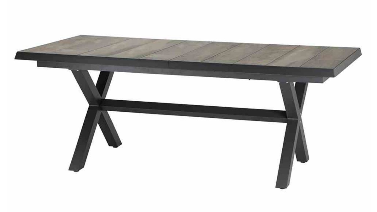 Das Aluminiumgestell in anthrazit matt verleiht dem Tisch eine elegante, moderne Note, während die Keramikplatte in washed grey durch ihre edle Optik und hohe Widerstandsfähigkeit begeistert.