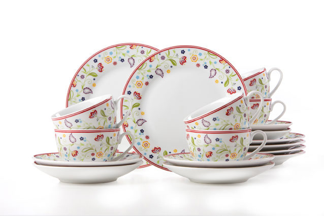Bei diesem Frühstücksset gehen hohe Qualität und kreativ-stilvolles Design Hand in Hand. Das Geschirr präsentiert sich in einem warmen, wohnlich-einladenden Braunton, akzentuiert durch Ornamente, die einerseits Verspieltheit und andererseits Harmonie ausstrahlen. Hergestellt ist das Kaffeeservice aus erstklassigem Porzellan. Dank des edlen Materials und des charmanten Designs erscheint das Frühstücksgeschirr sehr elegant.