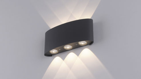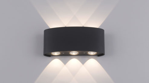 Außenlampe mit halbrundem Lampenschirm und Ausleuchtung nach oben und unten