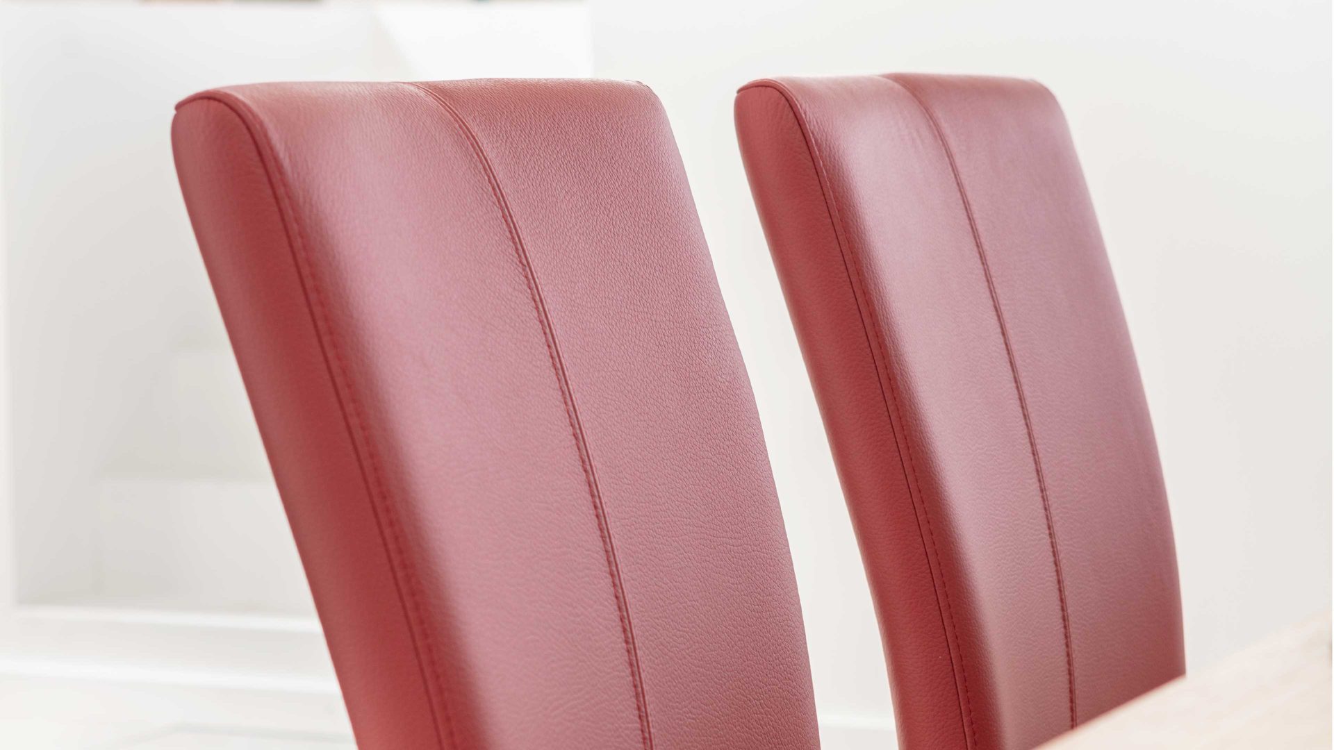 Der bequeme Esszimmerstuhl überrascht neben einem hohen Sitzkomfort mit einer ansprechenden Optik. Denn der Freischwinger besticht insbesondere durch den rubinroten Lederbezug und dem Edelstahlfuß aus Flachstahl, der sich mit einer gebürsteten Oberfläche präsentiert. Dank dieser Materialauswahl wirkt das Sitzmöbel ohne Armlehnen besonders modern.
