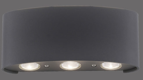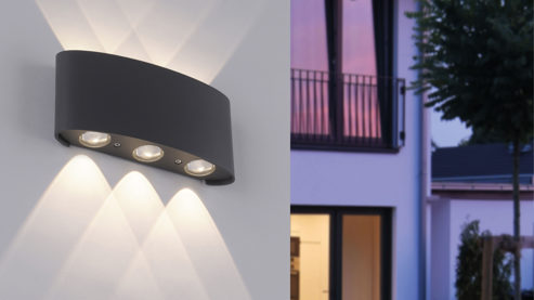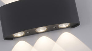 Außenlampe mit halbrundem Lampenschirm und Ausleuchtung nach oben und unten