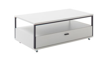 mit einer Schublade, einem offenen Fach und Rollen
