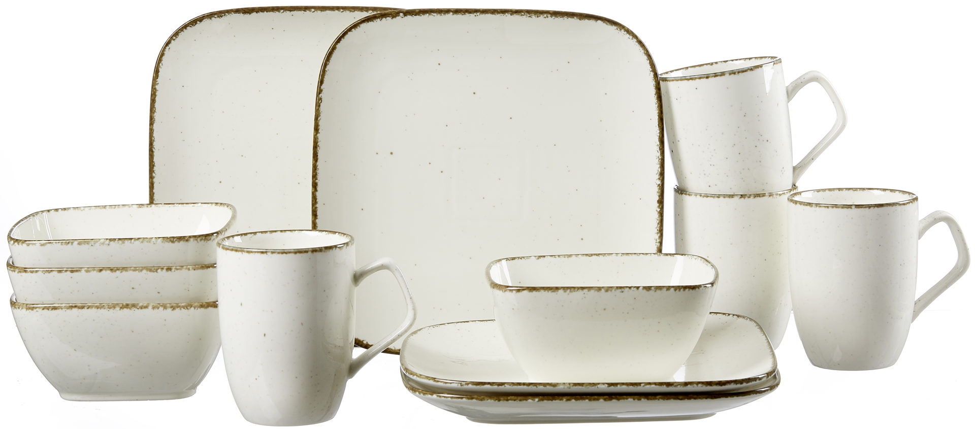 Beim erstklassigen Service handelt es sich um ein zwölfteiliges Brunchset, das sich aus vier Kaffeebechern, vier Tellern und vier Schalen zusammensetzt. Mit Maßen von ca. 12 x 11 x 8 cm (BxHxT) bieten die Kaffeebecher ein Fassungsvermögen von ca. 380 ml, sodass Sie jedes Mal eine gehörige Portion Ihres Lieblingskaffees oder auch -tees genießen können. Die vier quadratischen Teller messen ca. 22,5 x 2 x 22,5 cm (BxHxT). Auch die Schalen sind quadratisch gestaltet. Ihre Maße belaufen sich auf ca. 14 x 7 x 14 cm (BxHxT).