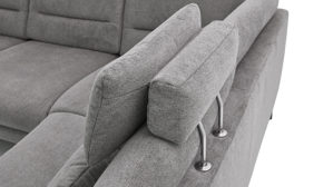 die Kopfstütze wird in die Kopfstützenvorrichtung an der Rückenlehne des Sofas eingesteckt und lässt sich dann in der Höhe und in der Neigung manuell verstellen