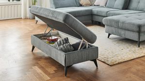 Dank der bodenfreien Konstruktion ist das Ecksofa aus der Modulmaster Serie MM-MP1206 ideal für Staubsaugerroboter geeignet und unterstützt eine einfache Reinigung. Gleichzeitig wirkt die Couchlandschaft leicht und modern.
