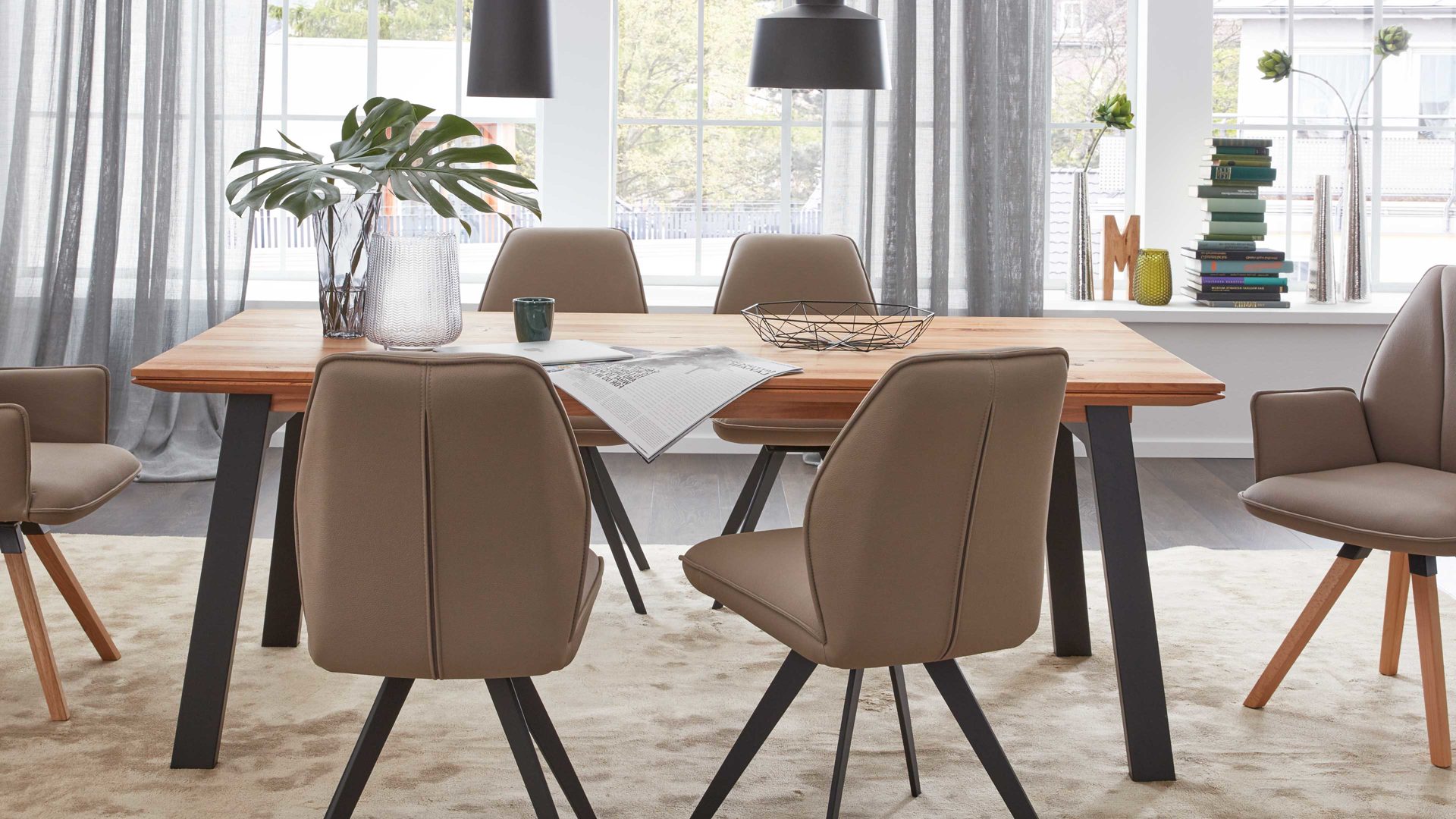 Bei den Tischvarianten genießt du volle Gestaltungsfreiheit: vom klassischen 4-Fuß-Tisch über einen skandinavisch inspirierten Design-Tisch mit schwarzem Gestell bis hin zum runden Esstisch mit praktischer Auszugsfunktion. Die Holzplatten sind in drei attraktiven Farbausführungen erhältlich und lassen sich perfekt mit deinem Stuhlprogramm kombinieren.