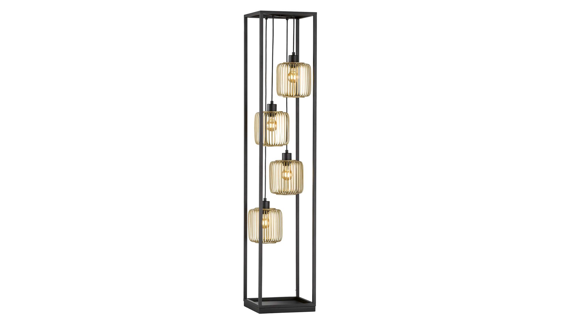 Details sandschwarzes Metall goldfarbene Metall-Lampenschirme   schwarzes Kunststoffkabel mit Fußtrittschalter, Länge ca. ...