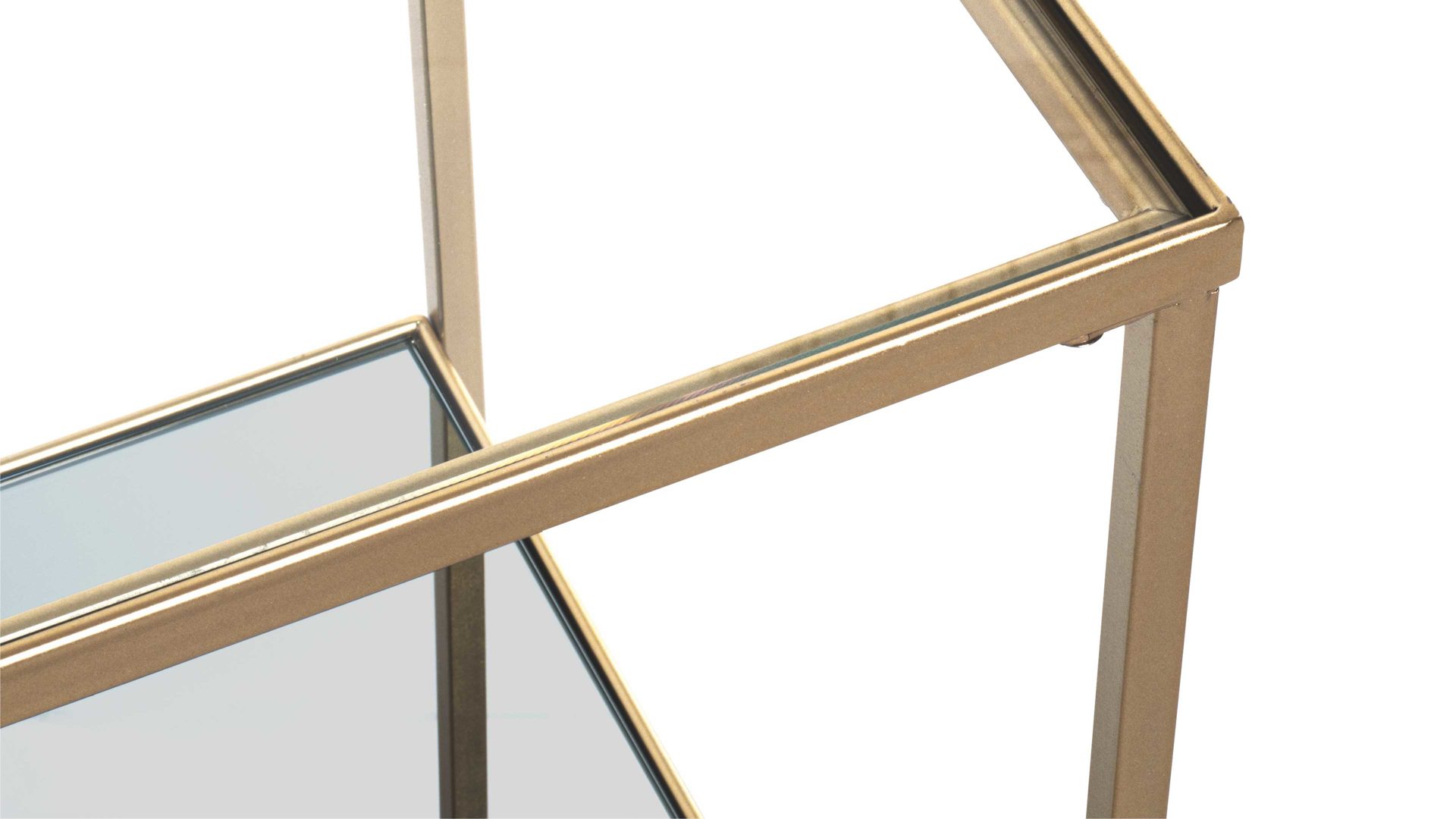 Der Beistelltisch Porto ist mit seinem modernen und eleganten Design ein absoluter Hingucker. Er kombiniert ein goldfarben lackiertes Metallgestell mit zwei Ablagen: Die obere besteht aus Sicherheitsglas und die untere aus Spiegelglas. Dank der hochwertigen Materialien ist das Tischchen robust, widerstandsfähig und langlebig. Seine Maße belaufen sich auf ca. 39 x 55 x 39 cm (BxHxT).