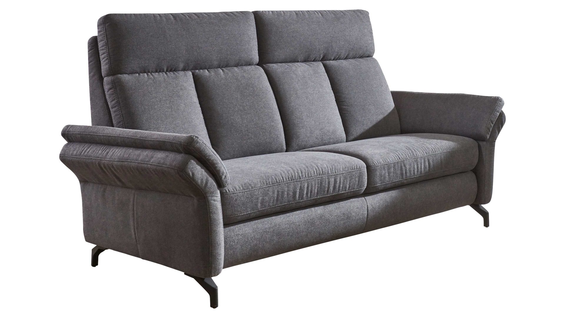 Der Zweisitzer aus dem hochwertigen Polsterprogramm OrthoSedis 4.0 kombiniert einen edlen anthrazitfarbenen Stoffbezug mit mattschwarz lackierten Metallfüßen. Sowohl die Materialien als auch die Farben harmonieren perfekt und verleihen dem Sofa eine moderne und elegante Ausstrahlung. Durch das zeitlose Design fügt sich die Couch in verschiedene Einrichtungsstile passend ein.