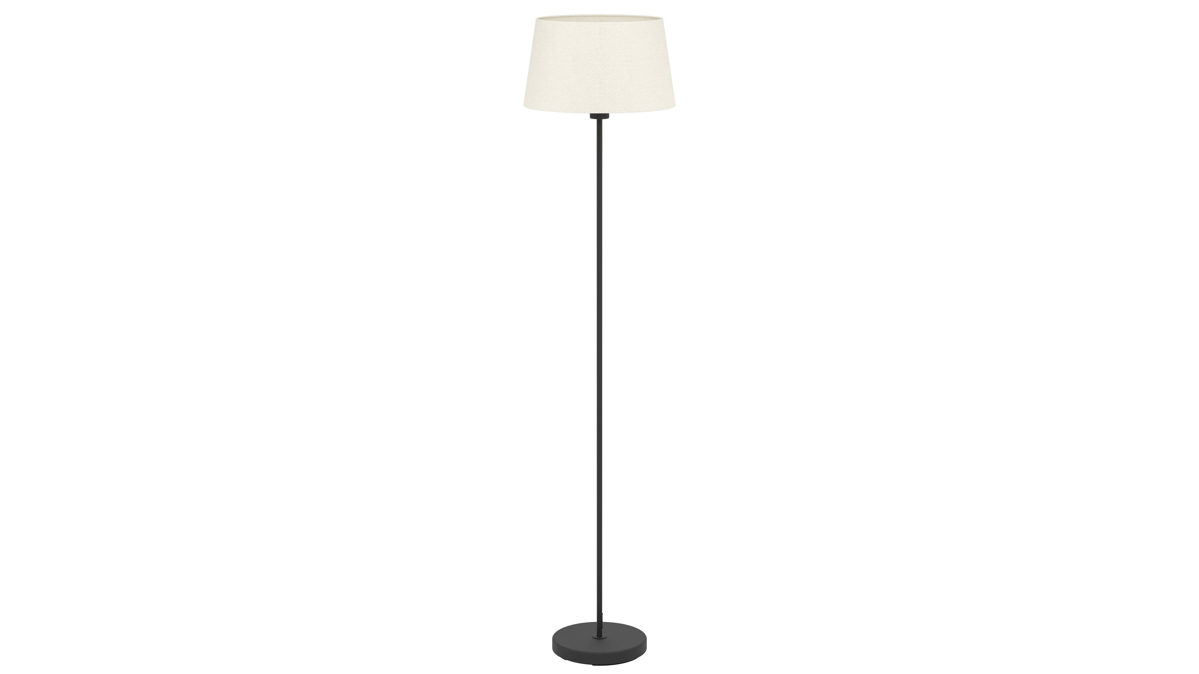 weißer Stoff-Lampenschirm kombiniert mit schwarzem Stahl-Fuß