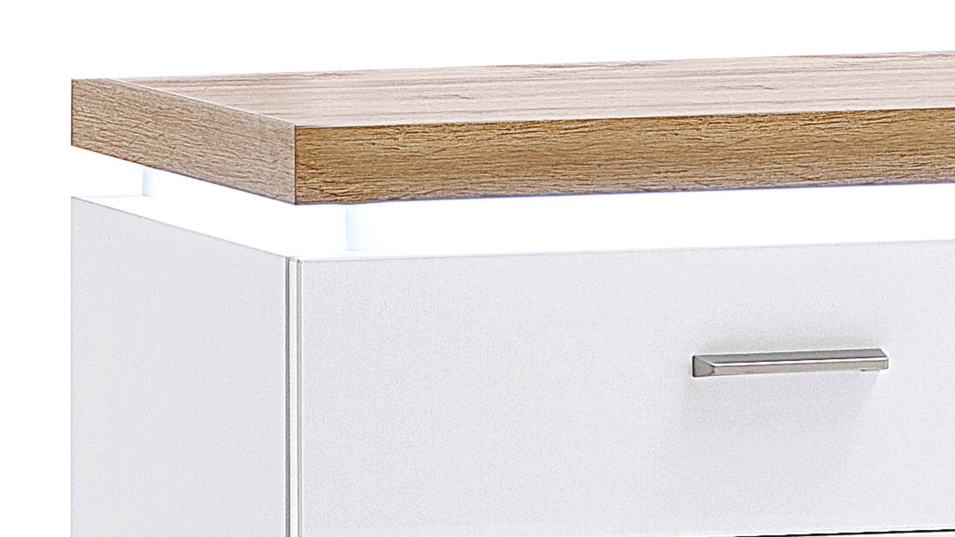 Highlights bilden die angenehme Dämpfung der Schubladen für lautloses Schließen und die Deckboden-Beleuchtung mit fest verbauten LED-Leuchtmitteln, die bereits inklusive ist und optisch wie funktional begeistert. Gegen Aufpreis lässt sich die Kommode mit einer zusätzlichen LED-Beleuchtung und Funkfernbedienung ergänzen.