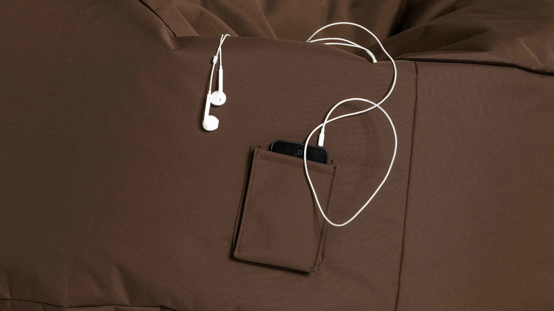 Der braune Sitzsack-Sessel Made in Germany ist genau das richtige Sitzmöbel zum Lesen, Entspannen oder zum Fernsehen.