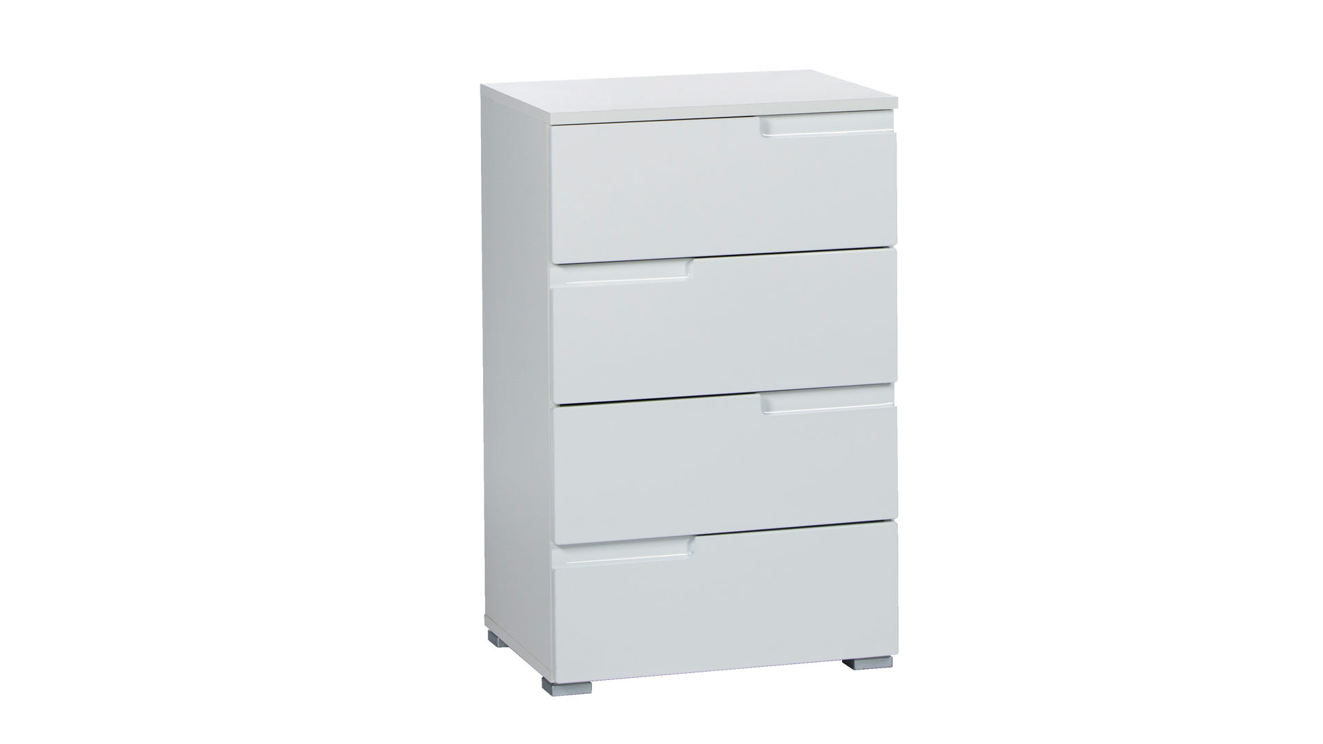 In Ihrem Schlafzimmer verstauen Sie Wäsche und Handtücher in dieser stilvollen und modernen Kommode. Das funktionale Schlafzimmermöbel strahlt mit Hochglanzfronten, wodurch das Modell besonders edel wirkt und hervorragend jede hochwertige Einrichtung komplettiert. Mit dem Korpus, der eine pflegeleichte Kunststoffoberfläche in Weiß hat, lässt sich die Schubbladenkommode zudem wunderschön mit anderen Möbeln kombinieren. Gleichzeitig ist sie bei Bedarf mühelos mit einem Tuch zu reinigen. Viel Stauraum bietet Ihnen dieser praktische Ordnungshelfer durch die vier geräumigen Schubladen. Wenn Sie die Kommode in Ihrer Garderobe einsetzen, räumen Sie neben Schals, Handschuhen und Mützen auch Regenschirme und Stoffbeutel in die zeitlose Aufbewahrungsmöglichkeit. Mit den Maßen von ca. 50 x 80 x 40 cm (BxHxT) benötigt das Modell eine geringe Stellfläche und ist Teil einer vielseitigen Serie.