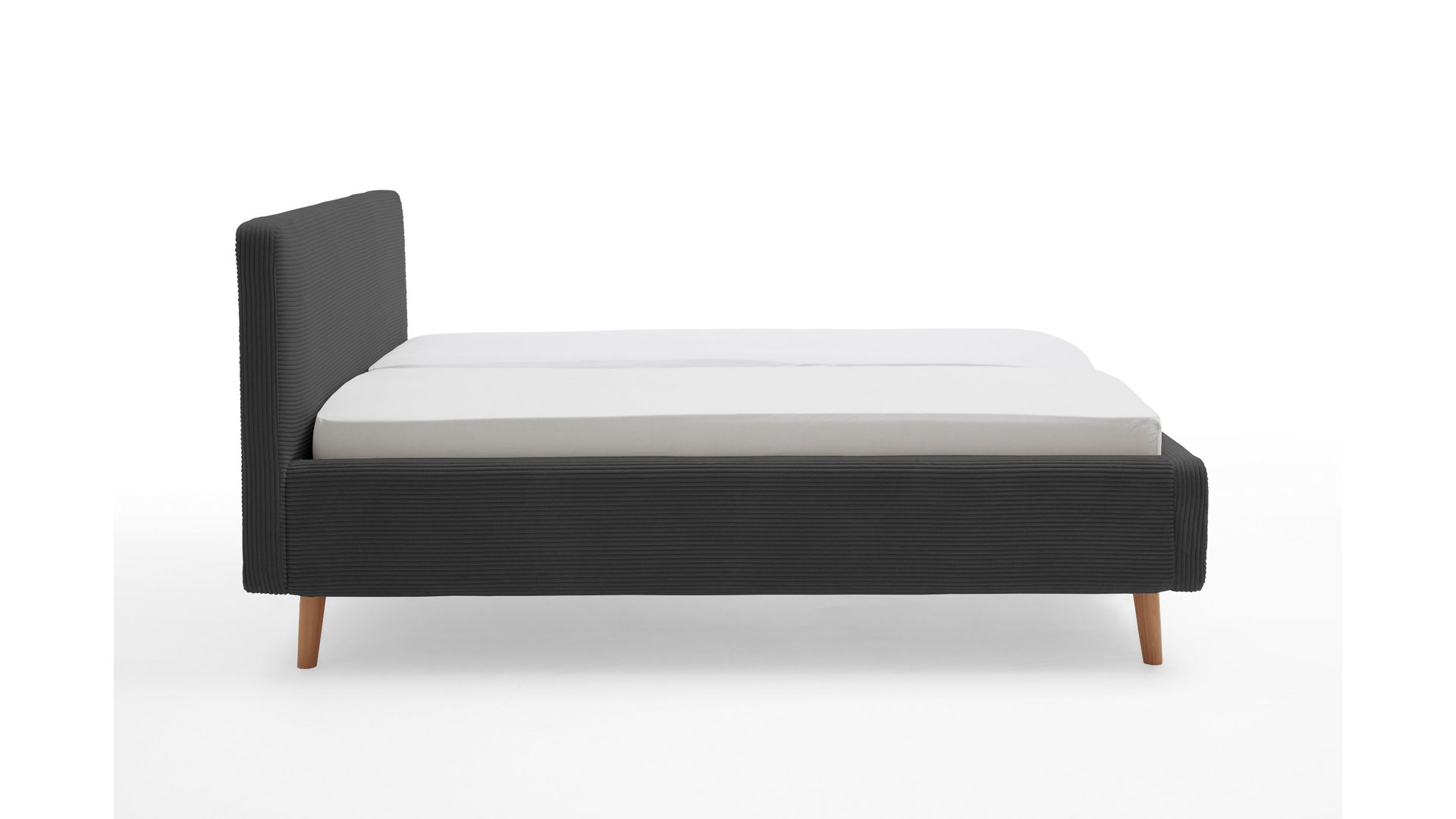 Das Polsterbettgestell Mattis begeistert durch die elegante Optik sowie die hervorragende Material- und Verarbeitungsqualität. Es kombiniert einen anthrazitfarbenen Breitcord-Bezug mit eichefarbenen Holzfüßen. Sowohl die Bettseiten als auch das Polsterkopfteil sind glatt bezogen. Letzteres lädt Sie ein, sich anzulehnen, wenn Sie abends im Bett vor dem Schlafen noch fernsehen oder in einem Buch lesen.