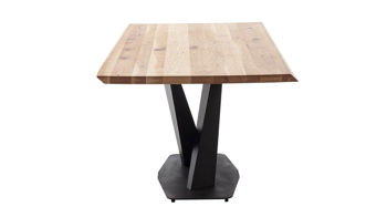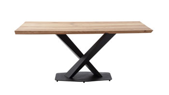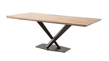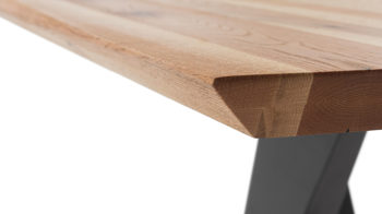 Tischplatte ca. 4 cm stark, aufgedoppelt, durchgehende Lamelle mit Reverse Baumkante