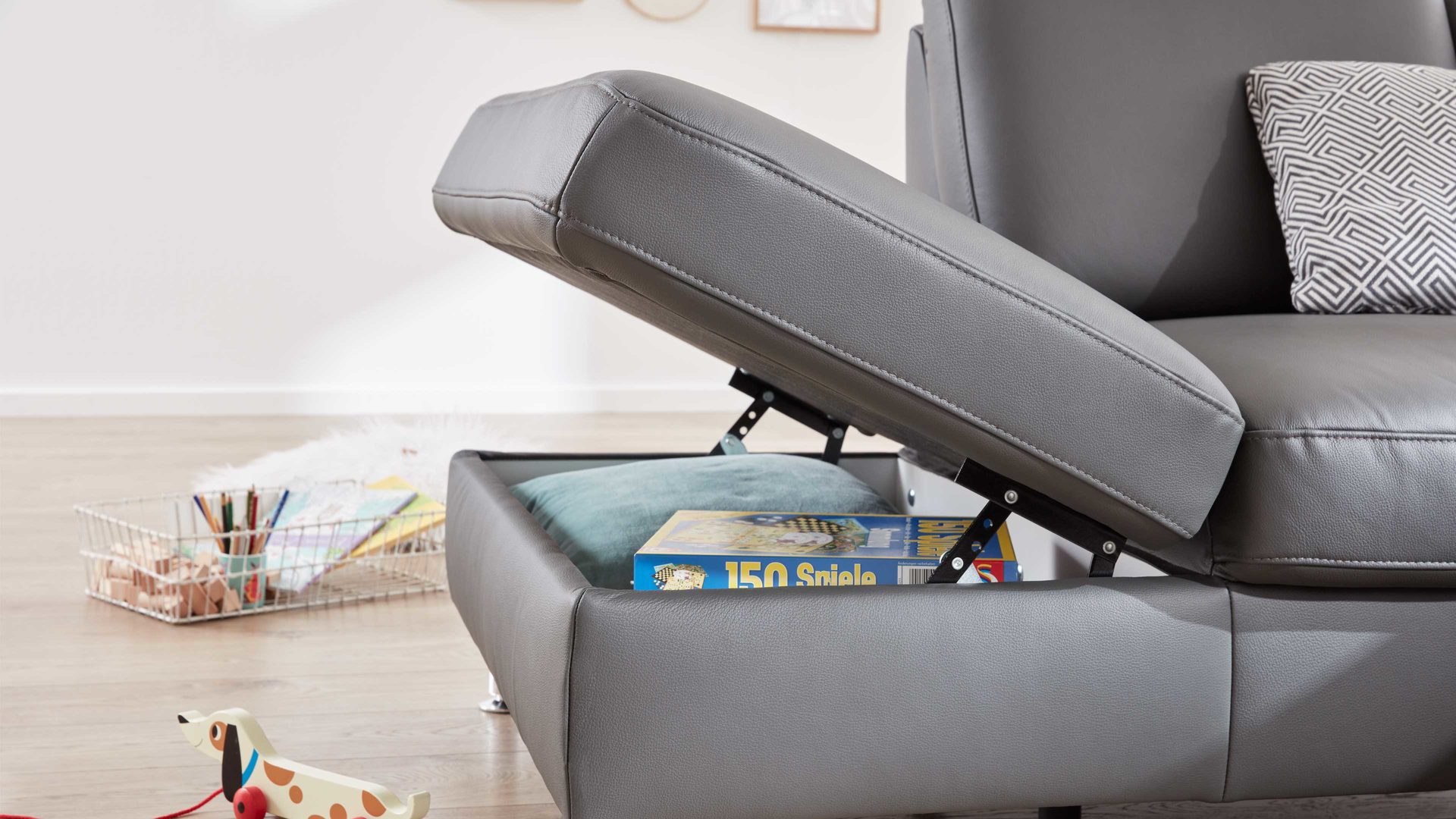 Die Abbildung zeigt ein Wohnbeispiel, welches auch Dekoration sowie separat erhältliches Zubehör enthält. Im Lieferumfang enthalten ist die Aufklappfunktion F.