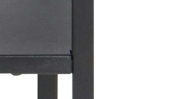 Designt im angesagten Industriestil, bringt dieser Tisch ganz besonderen Charme in Ihre Räume. Er besteht aus mattschwarz pulverbeschichtetem Metall und ist dementsprechend enorm robust und langlebig. Zur außergewöhnlichen Ausstrahlung des Nachttisches trägt auch die raue Oberfläche bei.