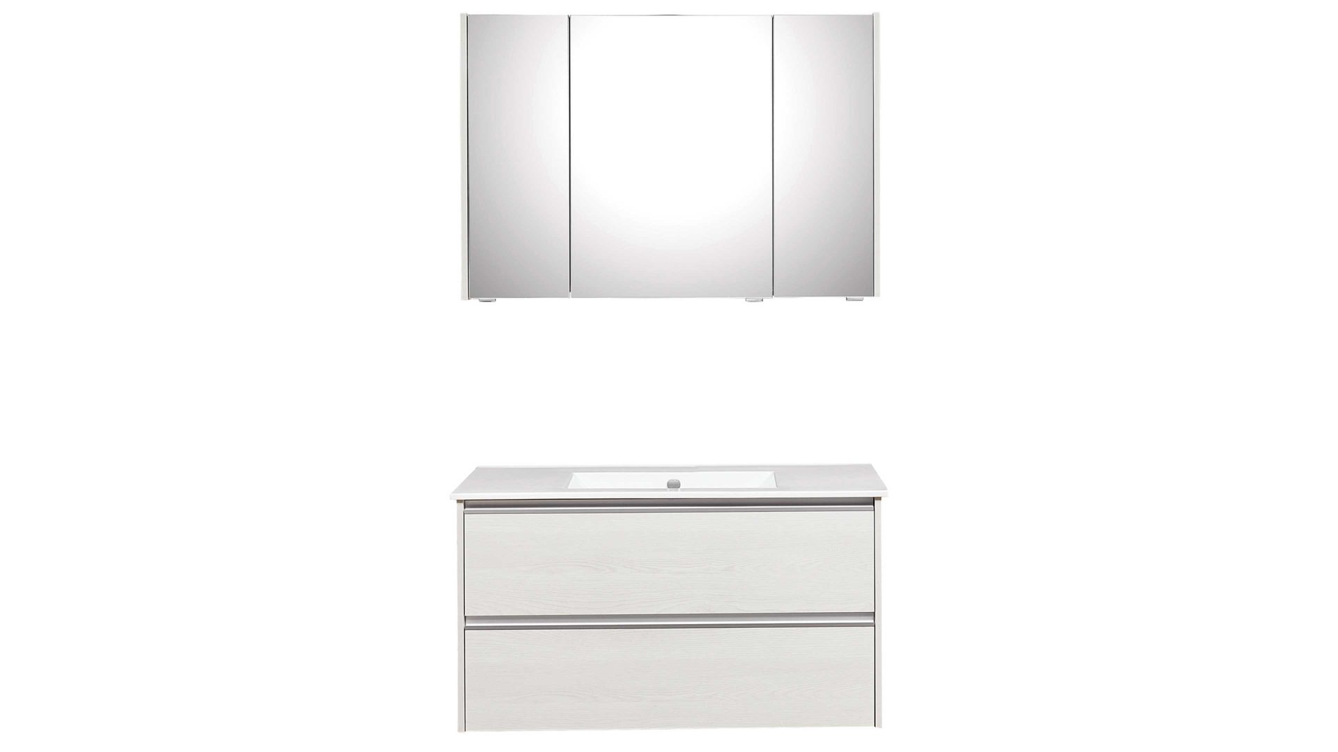 | Maße Einzelartikel: | Spiegelschrank ca. 103 x 70 x 17 cm (B/LxHx) Waschbecken ca. 101 x 2 x 47 cm (B/LxHxT) Waschbeckenunterschrank ca. 98 x 54 x 46 cm (BxHxT) | |