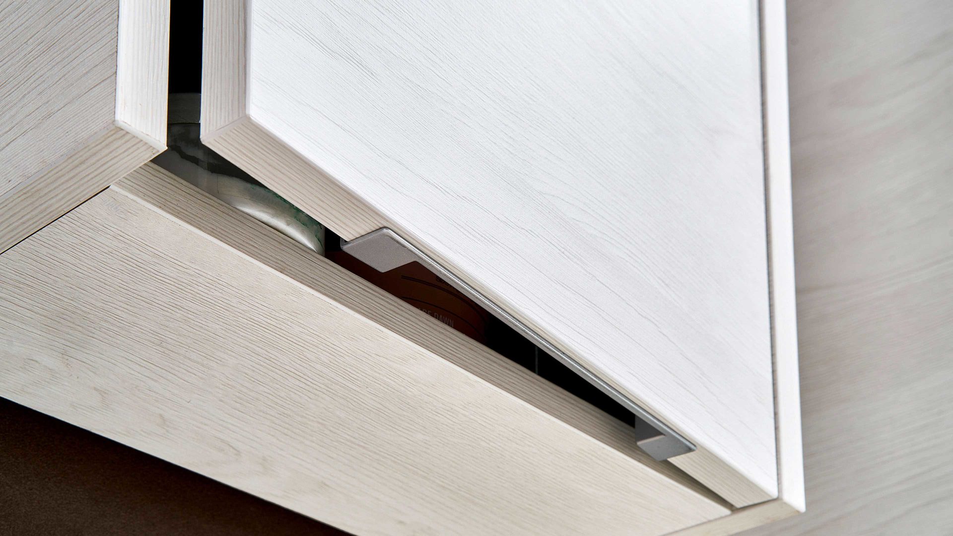 Der pelipal Hängeschrank Serie 6040 begeistert mit puristischen Designmerkmalen und hoher funktionaler Stärke. Charakteristisch sind die Fronten und der Korpus in weißer Eiche-Nachbildung. Sie verleihen dem Badmöbel eine zeitlos elegante Ausstrahlung. Für eine stilsichere Abrundung sorgt die matte alufarbene Griffleiste.