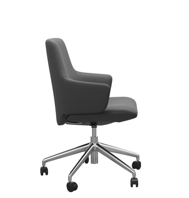 Die Abbildung zeigt den Home Office Sessel Laurel mit niedrigen Rücken in Leder Batick Grey mit dem gestell in Chrom.