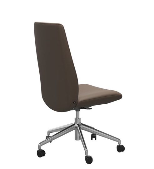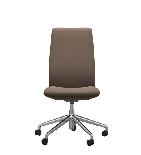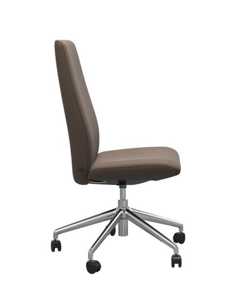 Die Abbildung zeigt den Home Office Sessel Laurel mit hohen Rücken in Leder Batick Mole mit dem gestell in Chrom.