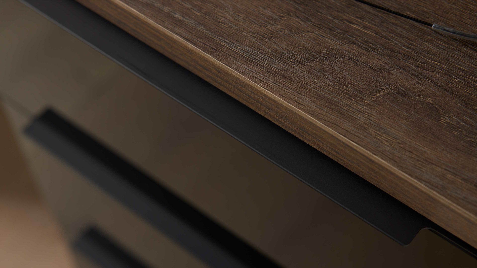 Nachtkommode aus der Interliving Kleiderschrank Serie 1208 – stilvoller Akzent in Schwarzglas und Atlantic-Eiche