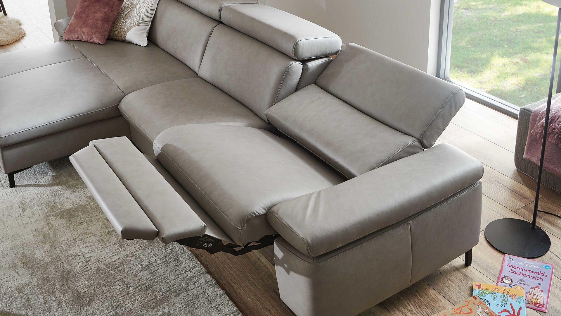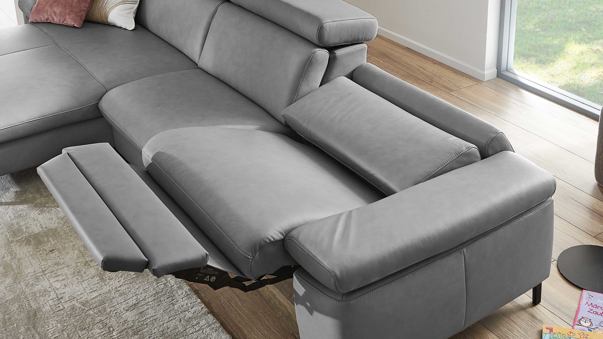 Für Extra-Komfort können Sie auch das Kopfpolster motorisch über zwei weitere Bediensensoren verstellen. Die Polsterelemente mit WallAway-Funktion sind bis maximal 120 kg belastbar.
