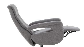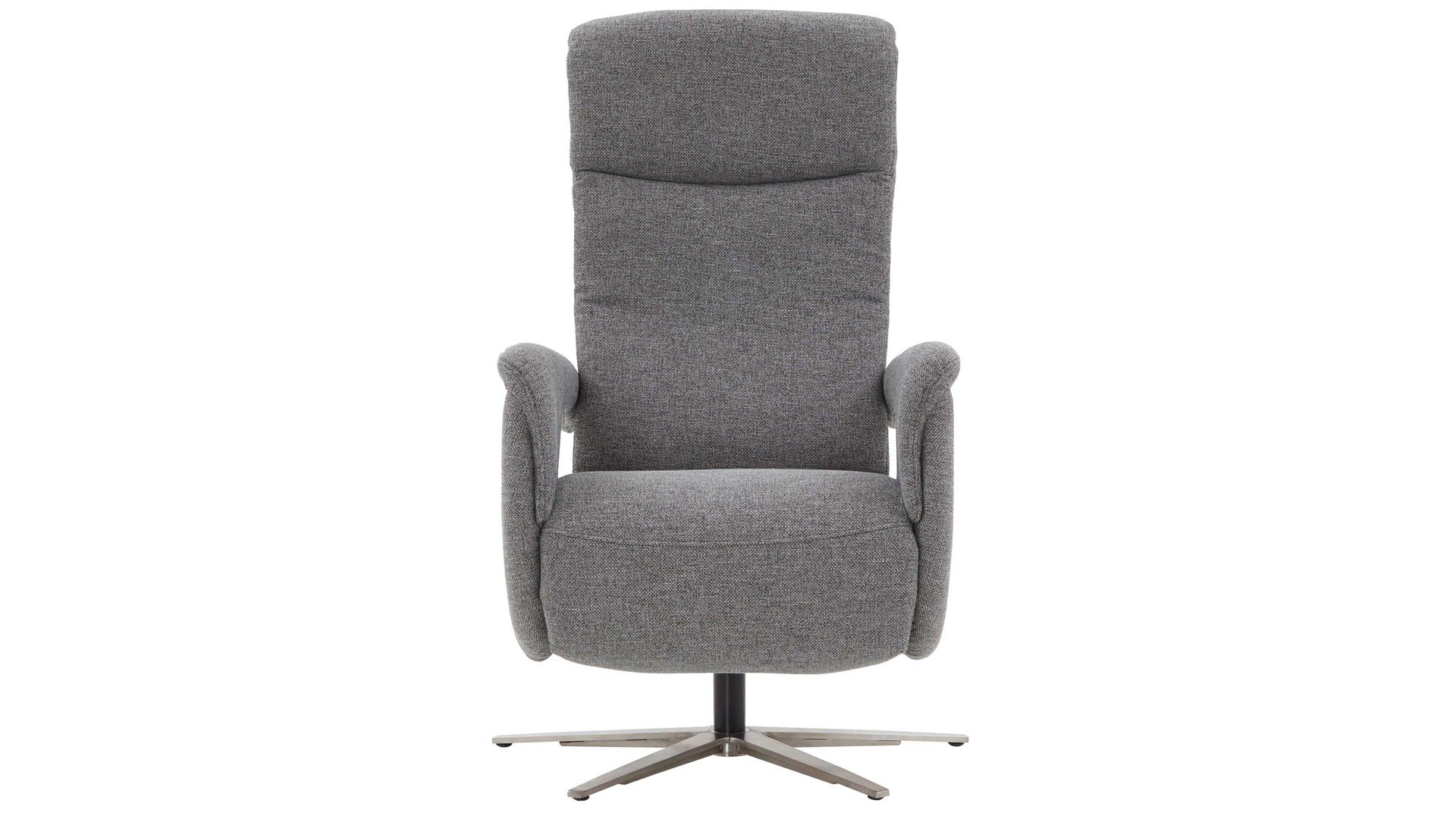 Kombinieren Sie den stahlfarbenen Stoffbezug mit kräftigen Farben oder mit modernem Weiß. Denn der edelstahlfarbene Metall-Sternfuß passt hervorragend auch zu einem schlichten Einrichtungsstil. Aber vor allem der Sitzkomfort wird bei diesem Drehsessel großgeschrieben. Denn neben einer Sitzhöhe von ca. 43 cm, einer Sitztiefe von ca. 53 cm und einer Sitzbreite von ca. 51 cm überzeugt der Polstersessel mit einer hochwertigen Schaumpolsterung auf Wellenfederung. Zudem ist der Fernsehsessel 360 Grad drehbar und bietet manuelle Relaxfunktionen: Mittels Körperdruck wird die Rückenlehne gesenkt und der Sitz geht automatisch nach vorn und nach oben.